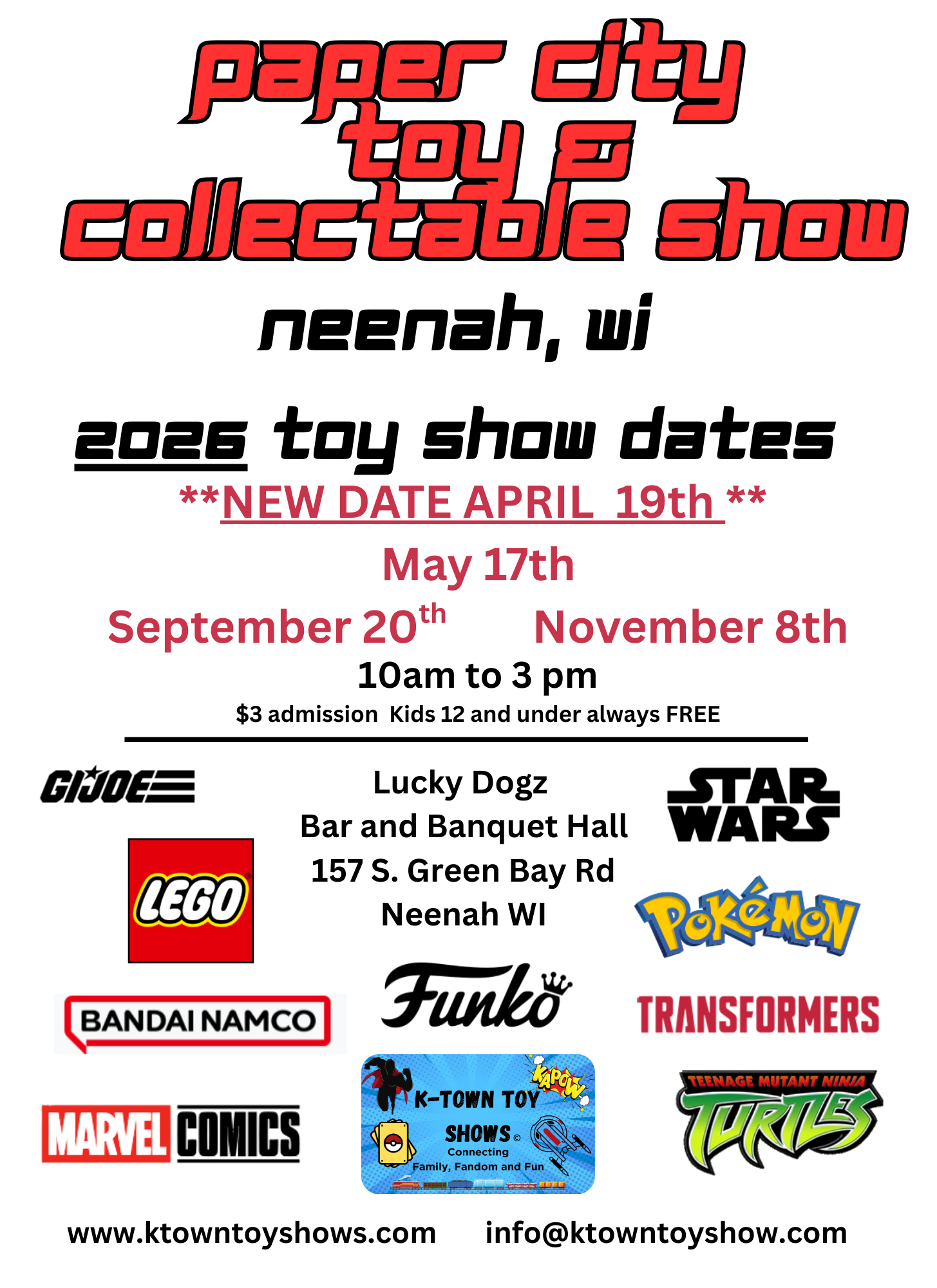 We are lucky to be able to bring our Toy and Collectable shows to the awesome people of Northeastern Wisconsin with the Paper City Toy and Collectible Show in Neenah Wisconsin.